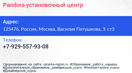 Pandora, установочный центр по адресу 125476, Россия, Москва, Василия Петушкова, 3 ст3 в дальнейшем Организация, размещена в следующих категориях: