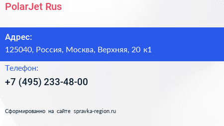 PolarJet Rus по адресу 125040, Россия, Москва, Верхняя, 20 к1 в дальнейшем Организация, размещена в следующих категориях: