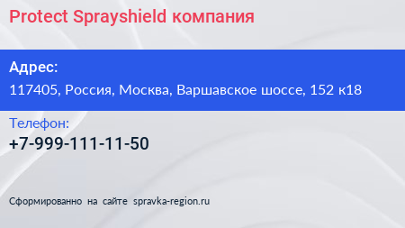 Protect Sprayshield, компания по адресу 117405, Россия, Москва, Варшавское шоссе, 152 к18 в дальнейшем Организация, размещена в следующих категориях: