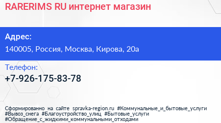 RARERIMS.RU, интернет-магазин по адресу 140005, Россия, Москва, Кирова, 20а в дальнейшем Организация, размещена в следующих категориях: