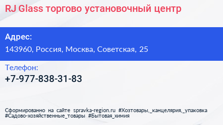 RJ-Glass, торгово-установочный центр по адресу 143960, Россия, Москва, Советская, 25 в дальнейшем Организация, размещена в следующих категориях: