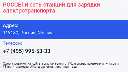 РОССЕТИ, сеть станций для зарядки электротранспорта по адресу 119180, Россия, Москва, в дальнейшем Организация, размещена в следующих категориях: