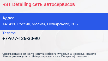 RST Detailing, сеть автосервисов по адресу 141411, Россия, Москва, Пожарского, 30Б в дальнейшем Организация, размещена в следующих категориях: