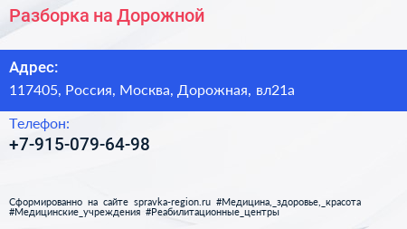 Разборка на Дорожной по адресу 117405, Россия, Москва, Дорожная, вл21а в дальнейшем Организация, размещена в следующих категориях: