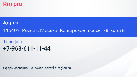 Rm-pro по адресу 115409, Россия, Москва, Каширское шоссе, 78 к6 ст8 в дальнейшем Организация, размещена в следующих категориях:
