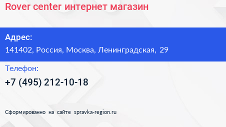Rover-center, интернет-магазин по адресу 141402, Россия, Москва, Ленинградская, 29 в дальнейшем Организация, размещена в следующих категориях: