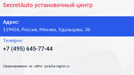 SecretAuto, установочный центр по адресу 119454, Россия, Москва, Удальцова, 36 в дальнейшем Организация, размещена в следующих категориях: