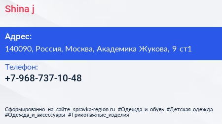Shina-j по адресу 140090, Россия, Москва, Академика Жукова, 9 ст1 в дальнейшем Организация, размещена в следующих категориях: