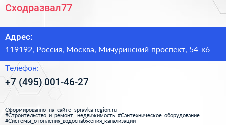 Сходразвал77 по адресу 119192, Россия, Москва, Мичуринский проспект, 54 к6 в дальнейшем Организация, размещена в следующих категориях: