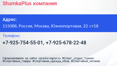 ShumkaPlus, компания по адресу 115088, Россия, Москва, Южнопортовая, 22 ст18 в дальнейшем Организация, размещена в следующих категориях: