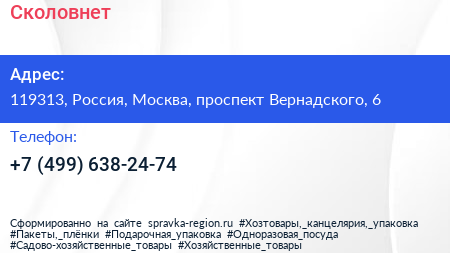 Сколовнет по адресу 119313, Россия, Москва, проспект Вернадского, 6 в дальнейшем Организация, размещена в следующих категориях: