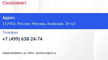 Сколовнет по адресу 117452, Россия, Москва, Азовская, 24 к3 в дальнейшем Организация, размещена в следующих категориях: