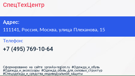 СпецТехЦентр по адресу 111141, Россия, Москва, улица Плеханова, 15 в дальнейшем Организация, размещена в следующих категориях: