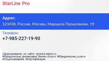 StarLine-Pro по адресу 123458, Россия, Москва, Маршала Прошлякова, 19 в дальнейшем Организация, размещена в следующих категориях: