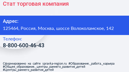 Стат, торговая компания по адресу 125464, Россия, Москва, шоссе Волоколамское, 142 в дальнейшем Организация, размещена в следующих категориях: