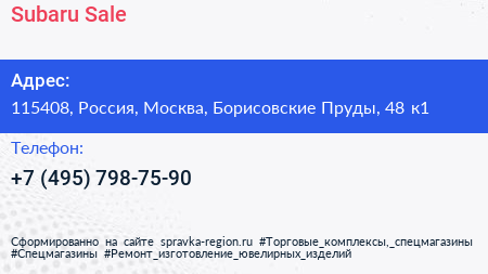 Subaru-Sale по адресу 115408, Россия, Москва, Борисовские Пруды, 48 к1 в дальнейшем Организация, размещена в следующих категориях: