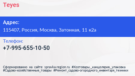 Teyes по адресу 115407, Россия, Москва, Затонная, 11 к2а в дальнейшем Организация, размещена в следующих категориях:
