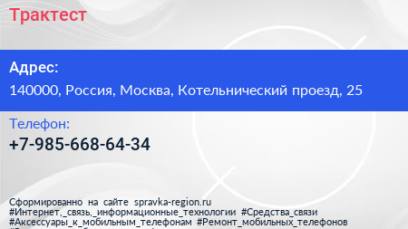 Трактест по адресу 140000, Россия, Москва, Котельнический проезд, 25 в дальнейшем Организация, размещена в следующих категориях: