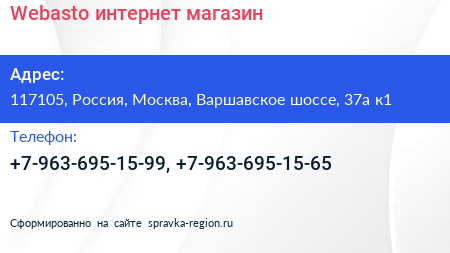 Webasto, интернет-магазин по адресу 117105, Россия, Москва, Варшавское шоссе, 37а к1 в дальнейшем Организация, размещена в следующих категориях: