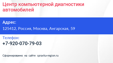 Центр компьютерной диагностики автомобилей по адресу 125412, Россия, Москва, Ангарская, 59 в дальнейшем Организация, размещена в следующих категориях: