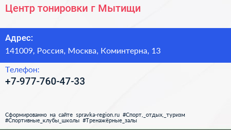 Центр тонировки, г. Мытищи по адресу 141009, Россия, Москва, Коминтерна, 13 в дальнейшем Организация, размещена в следующих категориях: