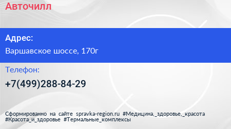 Авточилл по адресу Варшавское шоссе, 170г в дальнейшем Организация, размещена в следующих категориях: