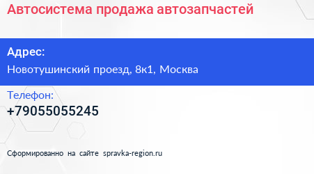 Автосистема - продажа автозапчастей по адресу Новотушинский проезд, 8к1, Москва в дальнейшем Организация, размещена в следующих категориях: