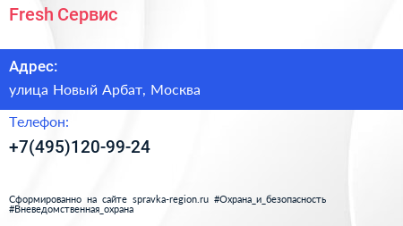Fresh Сервис по адресу улица Новый Арбат, Москва в дальнейшем Организация, размещена в следующих категориях: