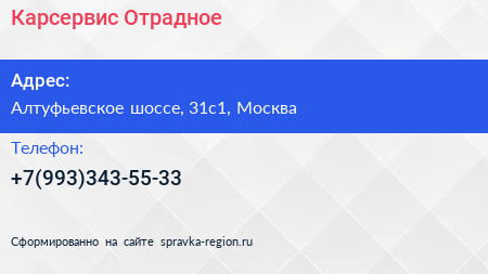 Карсервис Отрадное по адресу Алтуфьевское шоссе, 31с1, Москва в дальнейшем Организация, размещена в следующих категориях: