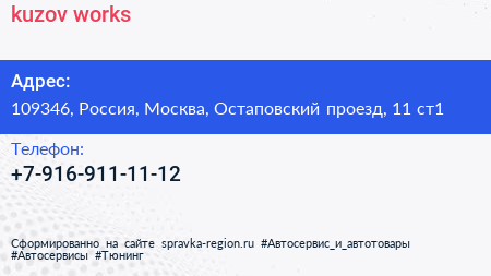 kuzov.works по адресу 109346, Россия, Москва, Остаповский проезд, 11 ст1 в дальнейшем Организация, размещена в следующих категориях: