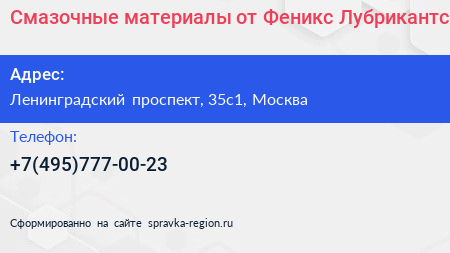 Смазочные материалы от «Феникс Лубрикантс» по адресу Ленинградский проспект, 35с1, Москва в дальнейшем Организация, размещена в следующих категориях: