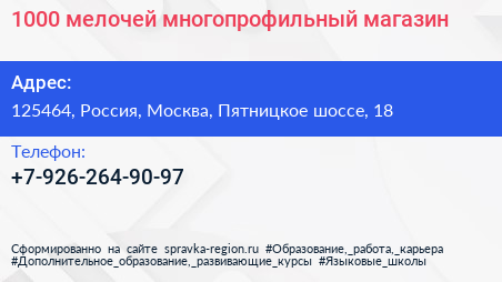1000 мелочей, многопрофильный магазин по адресу 125464, Россия, Москва, Пятницкое шоссе, 18 в дальнейшем Организация, размещена в следующих категориях: