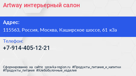 Artway, интерьерный салон по адресу 115563, Россия, Москва, Каширское шоссе, 61 к3а в дальнейшем Организация, размещена в следующих категориях: