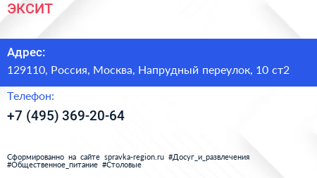 ЭКСИТ по адресу 129110, Россия, Москва, Напрудный переулок, 10 ст2 в дальнейшем Организация, размещена в следующих категориях: