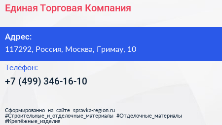 Единая Торговая Компания по адресу 117292, Россия, Москва, Гримау, 10 в дальнейшем Организация, размещена в следующих категориях: