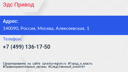 Эдс-Привод по адресу 140090, Россия, Москва, Алексеевская, 1 в дальнейшем Организация, размещена в следующих категориях:
