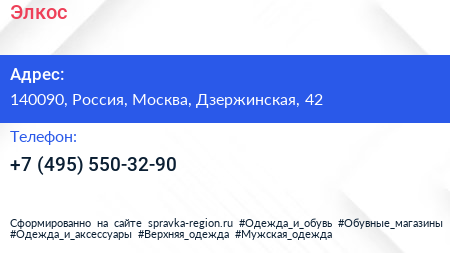 Элкос по адресу 140090, Россия, Москва, Дзержинская, 42 в дальнейшем Организация, размещена в следующих категориях: