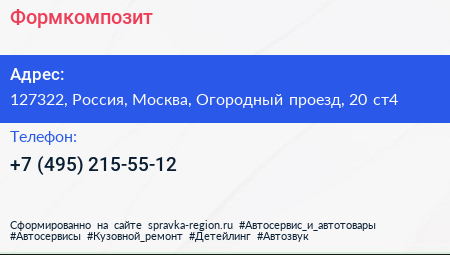 Формкомпозит по адресу 127322, Россия, Москва, Огородный проезд, 20 ст4 в дальнейшем Организация, размещена в следующих категориях: