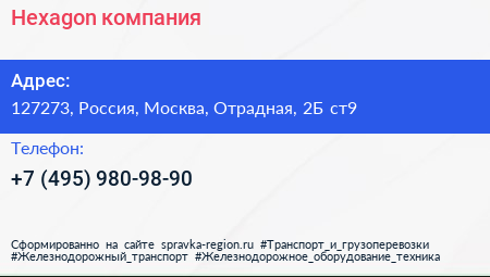 Hexagon, компания по адресу 127273, Россия, Москва, Отрадная, 2Б ст9 в дальнейшем Организация, размещена в следующих категориях: