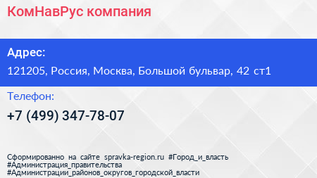 КомНавРус, компания по адресу 121205, Россия, Москва, Большой бульвар, 42 ст1 в дальнейшем Организация, размещена в следующих категориях: