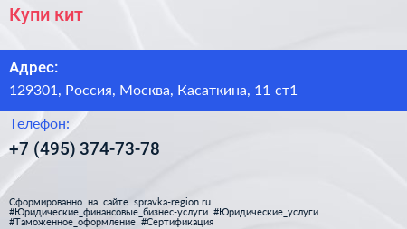 Купи-кит по адресу 129301, Россия, Москва, Касаткина, 11 ст1 в дальнейшем Организация, размещена в следующих категориях: