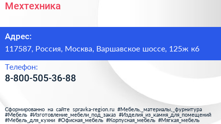 Мехтехника по адресу 117587, Россия, Москва, Варшавское шоссе, 125ж к6 в дальнейшем Организация, размещена в следующих категориях: