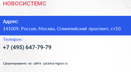 НОВОСИСТЕМС по адресу 141009, Россия, Москва, Олимпийский проспект, ст10 в дальнейшем Организация, размещена в следующих категориях: