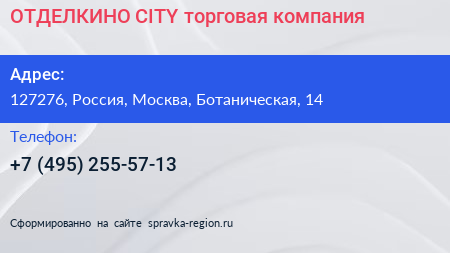 ОТДЕЛКИНО CITY, торговая компания по адресу 127276, Россия, Москва, Ботаническая, 14 в дальнейшем Организация, размещена в следующих категориях: