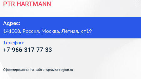 PTR HARTMANN по адресу 141008, Россия, Москва, Лётная, ст19 в дальнейшем Организация, размещена в следующих категориях:
