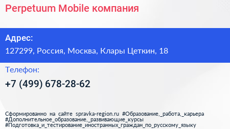 Perpetuum Mobile, компания по адресу 127299, Россия, Москва, Клары Цеткин, 18 в дальнейшем Организация, размещена в следующих категориях: