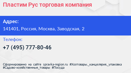 Пластим Рус, торговая компания по адресу 141401, Россия, Москва, Заводская, 2 в дальнейшем Организация, размещена в следующих категориях: