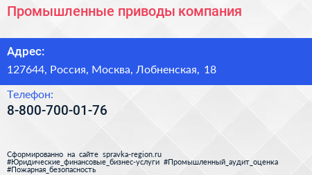 Промышленные приводы, компания по адресу 127644, Россия, Москва, Лобненская, 18 в дальнейшем Организация, размещена в следующих категориях: