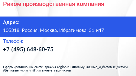 Риком, производственная компания по адресу 105318, Россия, Москва, Ибрагимова, 31 к47 в дальнейшем Организация, размещена в следующих категориях: