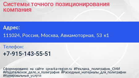 Системы точного позиционирования, компания по адресу 111024, Россия, Москва, Авиамоторная, 53 к1 в дальнейшем Организация, размещена в следующих категориях: